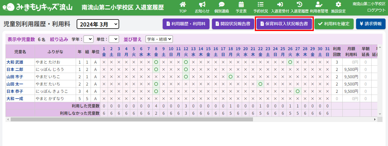 画面右上の【保育料収入状況報告書】ボタンをクリックしてください。