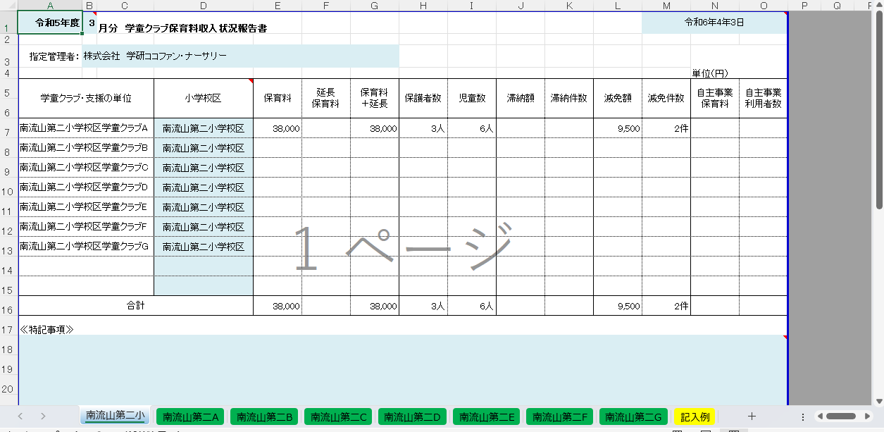 保育料収入状況報告書を出力する