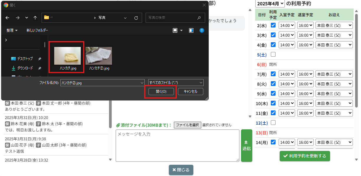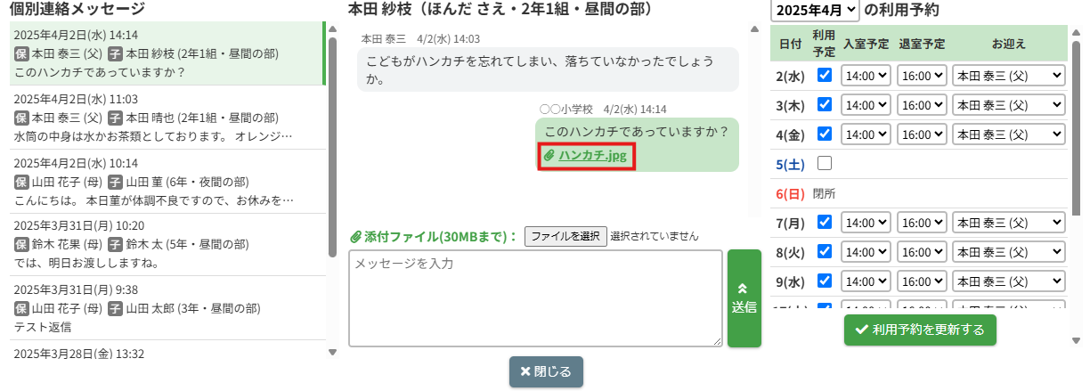 確認したい児童のメッセージスレッドをクリックしてください。