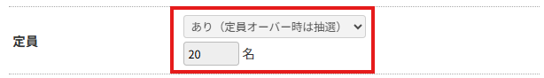 抽選が可能なのは、継続プログラム〔定員〕で「あり(定員オーバー時は抽選)」を選択した状態のみになります。