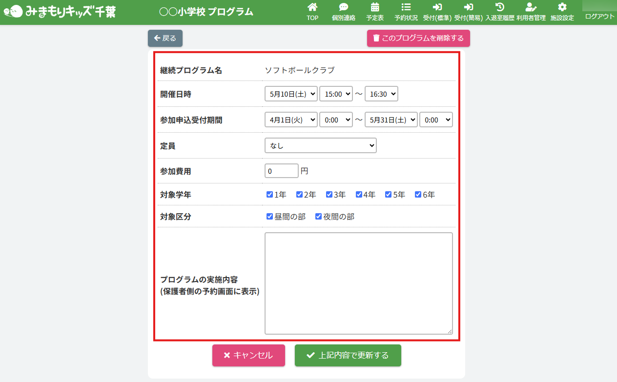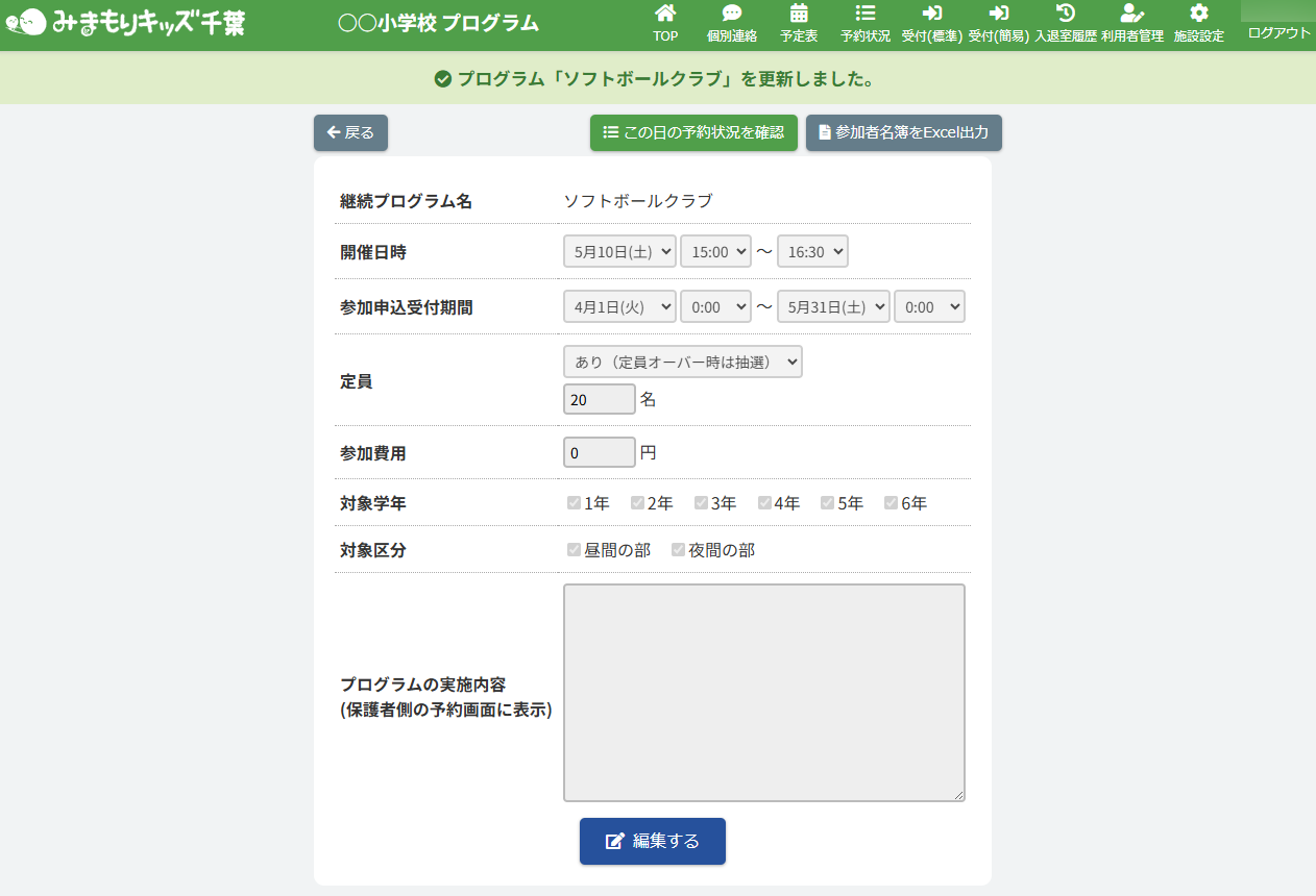 継続プログラムを編集する(アフタースクール)