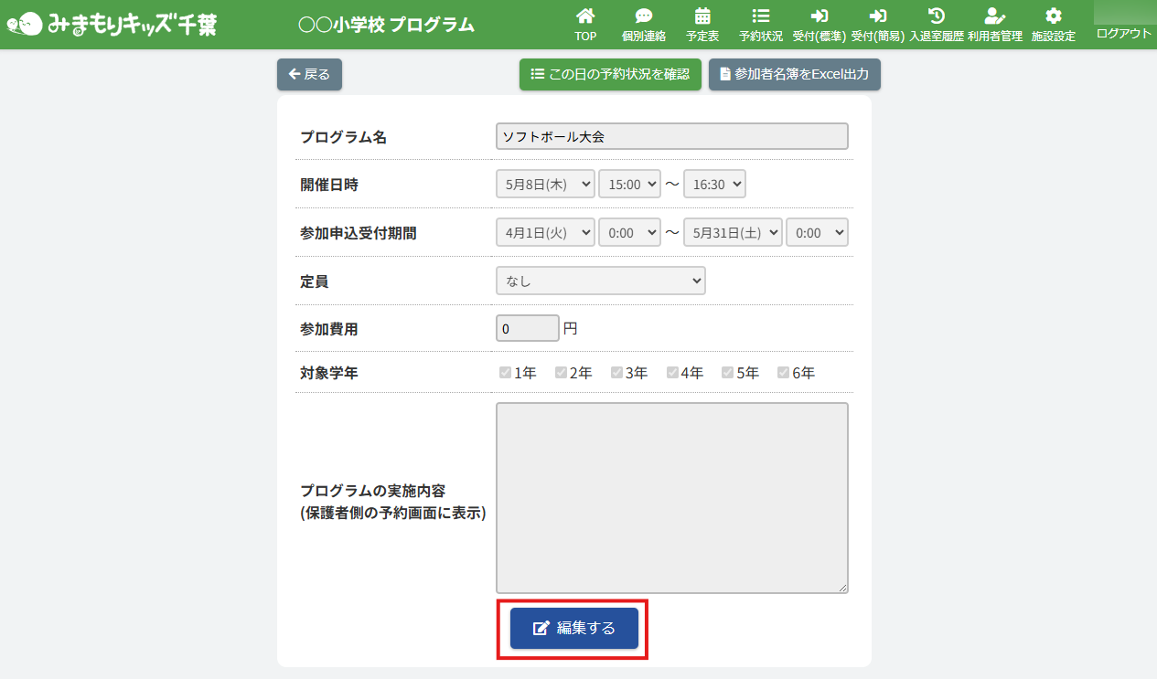 プログラム詳細画面で【編集する】ボタンをクリックしてください。