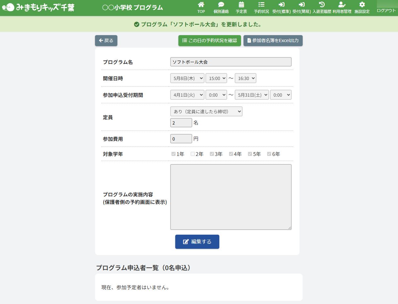 2.プログラム申込者の編集を実行する